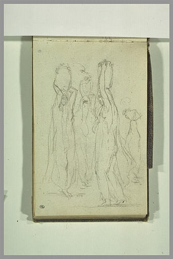 Album Belly Léon Adolphe -4-, folio 48, dessiné au verso ; Album cartonné en papier toilé (grenu) ; comprenant 60 feuillets de papiers de différentes couleurs. Etudes de paysages et de personnages orientaux. Traces de folio coupé entre les folios 49 et 50. H. 0,142 ; L. 0,213