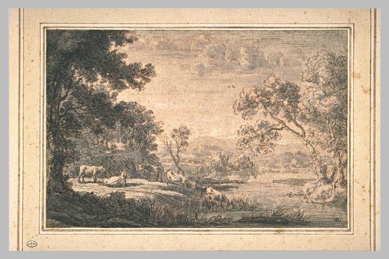 POP | Plateforme ouverte du patrimoinePaysage de rivière avec un troupeau de boeufs