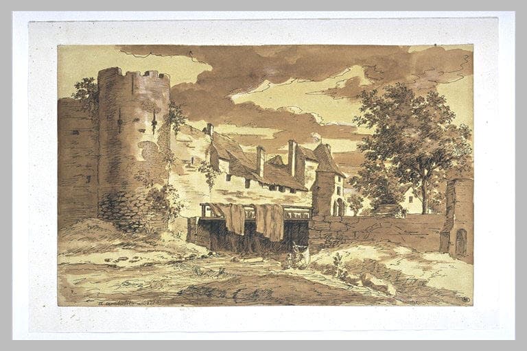 Maisons et lavandières au bas de remparts
