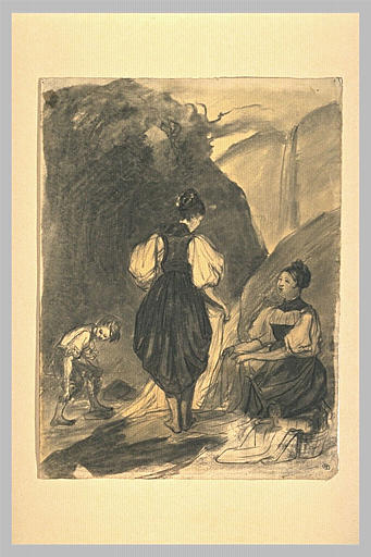 POP | Plateforme ouverte du patrimoineDeux lavandières au bord d'un ruisseau, et un enfant