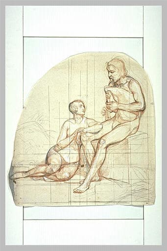 POP | Plateforme ouverte du patrimoineFemme aux pieds d'un homme nu, assis, jouant de la cornemuse