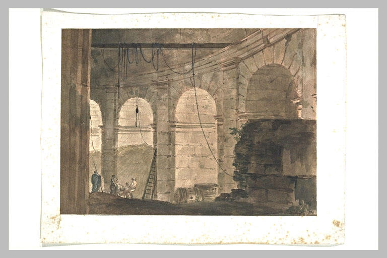 POP | Plateforme ouverte du patrimoineHommes transportant un corps dans un hémicycle servant de grange
