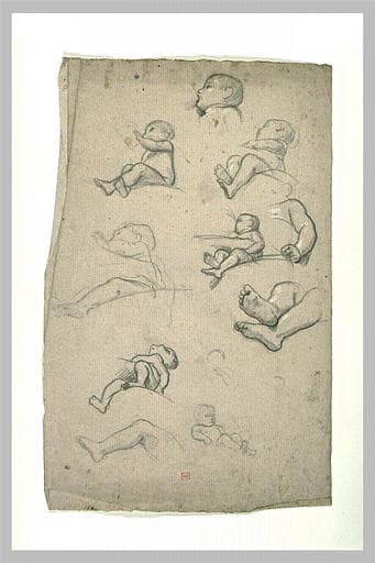 Etudes d'enfants assis, de têtes et de jambes d'enfant