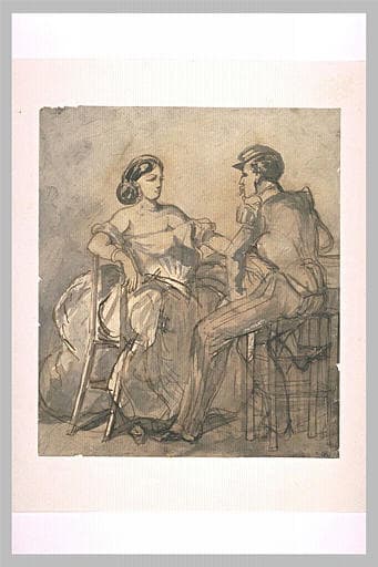 POP | Plateforme ouverte du patrimoineMilitaire assis en face d'une femme portant une robe décolletée