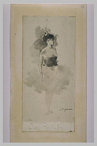 Danseuse, en pied, de face, le buste et la tête tournés vers la droite