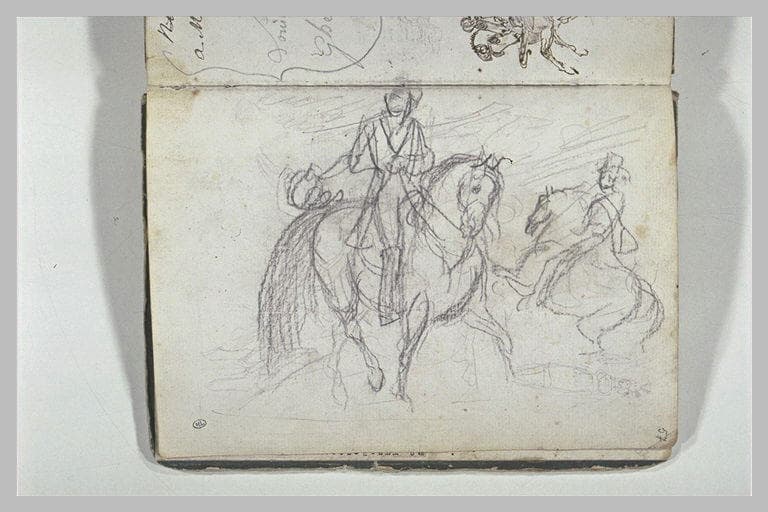 POP | Plateforme ouverte du patrimoineDeux études de cavaliers à cheval ; croquis de guerrier casqué