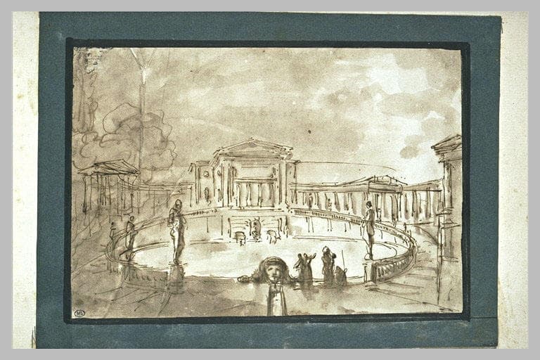 POP | Plateforme ouverte du patrimoineGrand bassin central enrouré d'une balustrade au centre d'une place