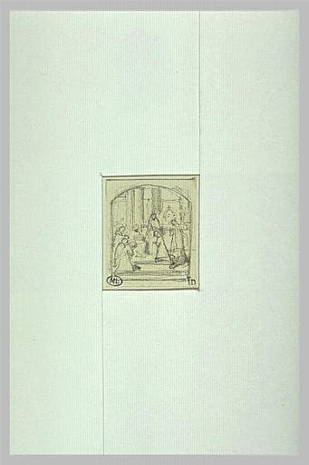 Religieux agenouillés autour d'une figure debout