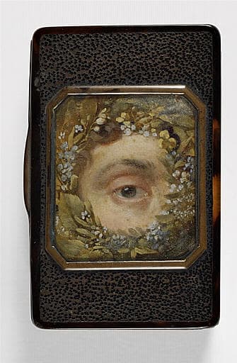 Miniature sur tabatière avec une longue notice manuscrite à l'intérieur de la tabatière :J'ai acheté cette tabatière dont la peinture sur le couvercle est un réplique de la miniature de Constant Desbordes qui se trouve au Musée de Douai ; j'ai acheté (...) cette tabatière le 11 Octobre 1920, avec le médaillon en bronze par David d'Angers et le médaillon en plâtre par l'acteur ( ?) Milingue (1833) à Mme Richard, arrière petite fille de Marceline, 6, rue (...) Paris. Son père était le petit fils de la soeur préférée de Marceline, Eugènie, mariée (_) aux environs de Rouen' etLucie (ou Lucien) Descavez (ou Descaver)