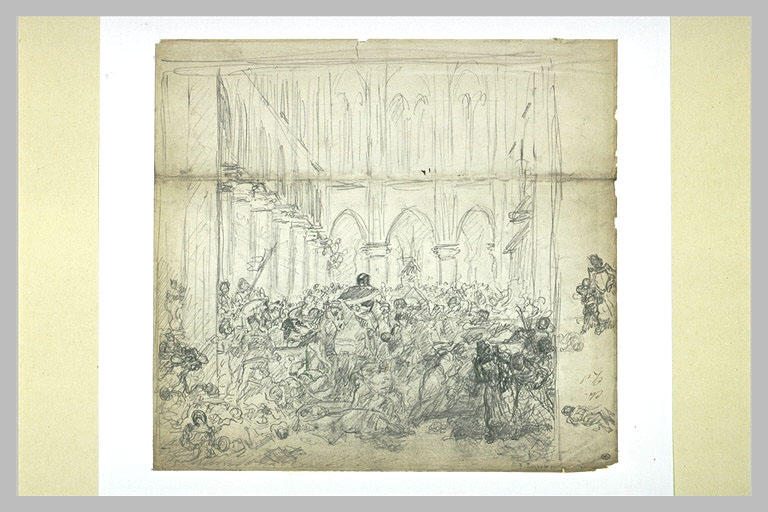 Etude pour le tableau du Salon de 1893. Signé en bas, à droite, à la mine de plomb : F. Roybet. Paraphes à la plume.