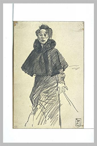 POP | Plateforme ouverte du patrimoineMélie Chrétien, en pied, une cape à large col sur les épaules