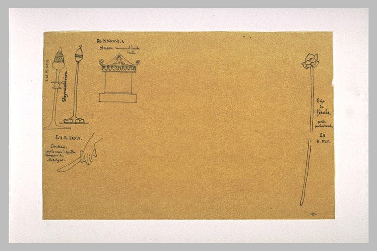 POP | Plateforme ouverte du patrimoineFeuille d'études de Marsyas et Apollon tenant des lyres de formes diverses