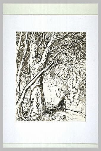 POP | Plateforme ouverte du patrimoinePaysage avec un paysan portant un fagot sur son dos dans un sous-bois