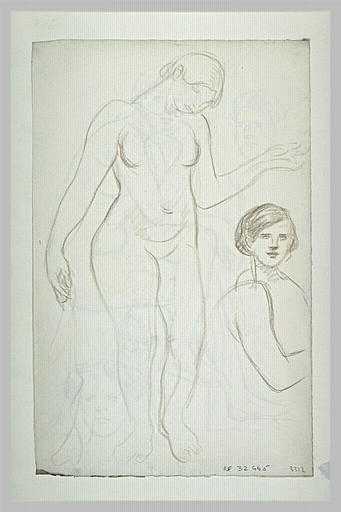 POP | Plateforme ouverte du patrimoineFeuille d'études : femme nue, assise, et deux têtes