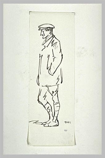 Homme debout, coiffé d'une casquette à visière et portant des knickers