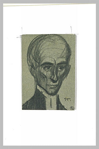 Tête d'homme, de face, au large front, col de clergyman