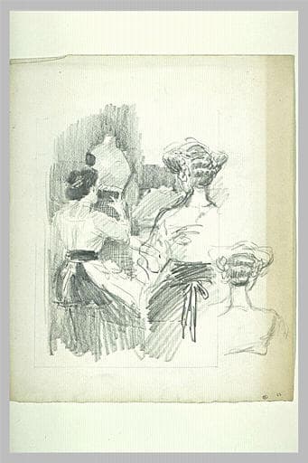 Couturières, assises, travaillant sur un mannequin ; reprise d'une tête
