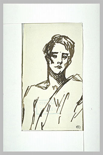 Jeune homme vu en buste, de face, le torse à demi-couvert d'une draperie