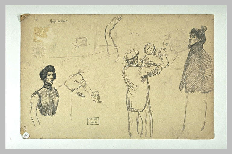 POP | Plateforme ouverte du patrimoineEtudes diverses : femme en buste, femme repassant, et homme debout vu de dos