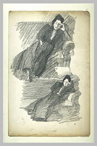 Double étude d'une femme assise sur un canapé, la tête appuyée sur sa main