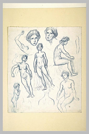 POP | Plateforme ouverte du patrimoineFeuille d'études : femmes nues, debouts ou assises, enfant nu, et deux têtes
