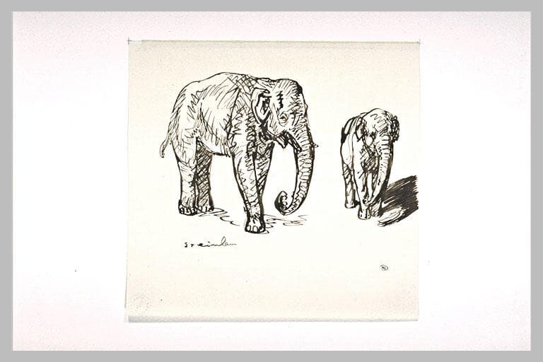 POP | Plateforme ouverte du patrimoineDeux études d'éléphants marchant vers la droite