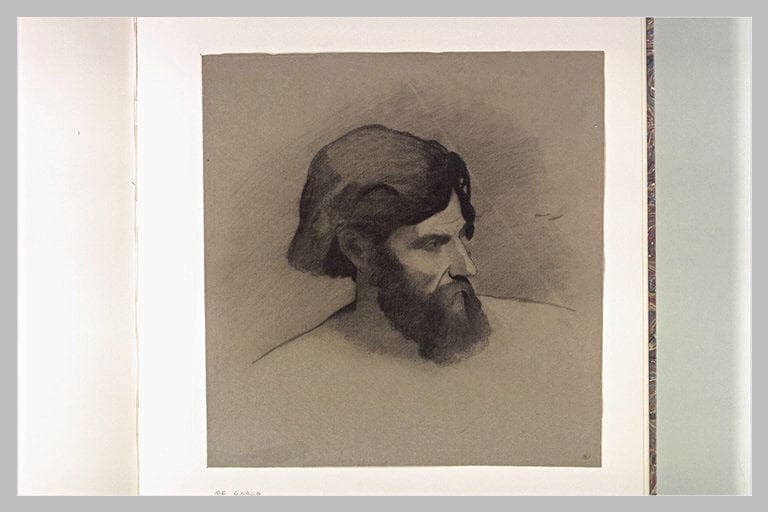 Album Redon Odilon -8-, folio 49, rapporté au recto ; Album factice, relié, recouvert de papier cuve et à dos de parchemin. Il comporte 50 folios