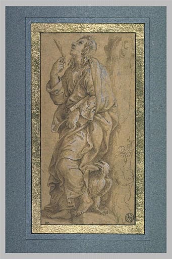 Saint Jean l'Evangéliste appuyé contre un arbre