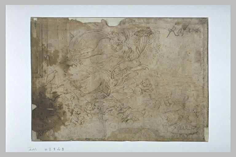 Plume et encre brune. Inscriptions, à la plume et à l'encre brune, dans des cartouches, à gauche :NOE', à droiteP[AT]RIARCHA. Annotation au crayon noir, en haut à droite :Rafaelo