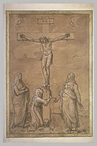 Le Christ en croix avec Marie-Madeleine, la Vierge et saint Jean