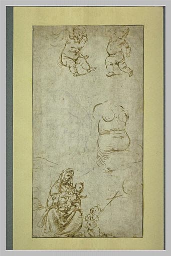 Etudes : la Vierge à l'Enfant avec le petit saint Jean ; deux angelots ...
