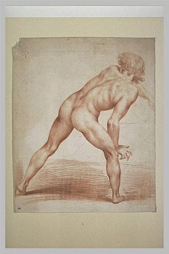 Etude académique d'homme nu, debout, de dos, se penchant
