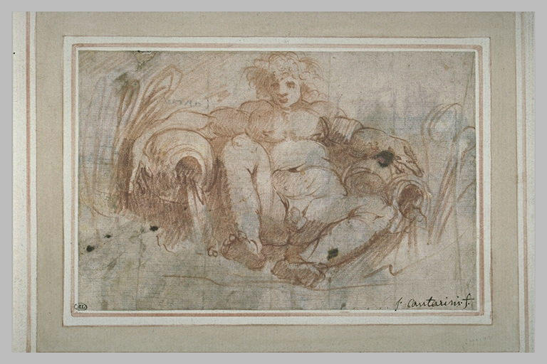 Jeune homme tenant deux urnes renversées : figure allégorique d'un fleuve
