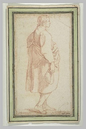 Jeune homme debout, tenant son bonnet à la main, tourné vers la droite