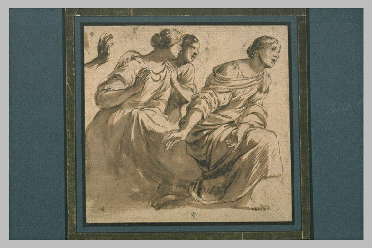 POP | Plateforme ouverte du patrimoineGroupe de trois femmes à genoux, tournées vers la droite
