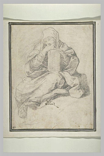 Une figure assise, la tête et les mains posées sur un livre : un prophète?