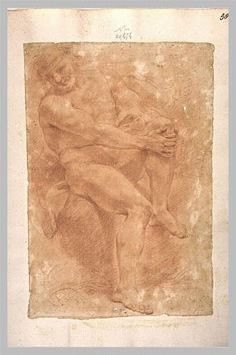 Homme nu, assis, se tenant le genou gauche