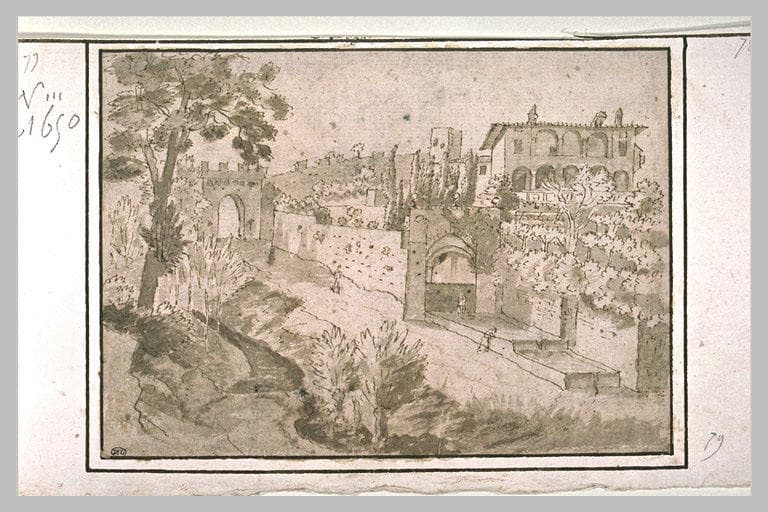 POP | Plateforme ouverte du patrimoineMurailles d'un cité, avec un bâtiment parmi les arbres