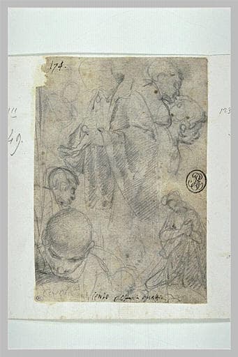 POP | Plateforme ouverte du patrimoineEtudes : homme drapé à mi-corps, quatre têtes, une figure agenouillée