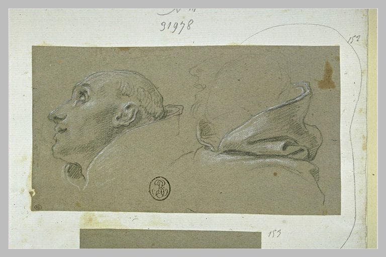 POP | Plateforme ouverte du patrimoineTête de religieux, de profil vers la gauche et étude de capuchon