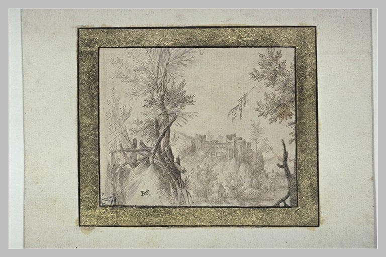 Petit paysage avec un chateau-fort dominant un défilé