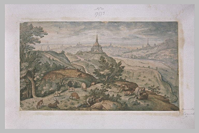 POP | Plateforme ouverte du patrimoinePaysage avec un troupeau, un berger et deux femmes