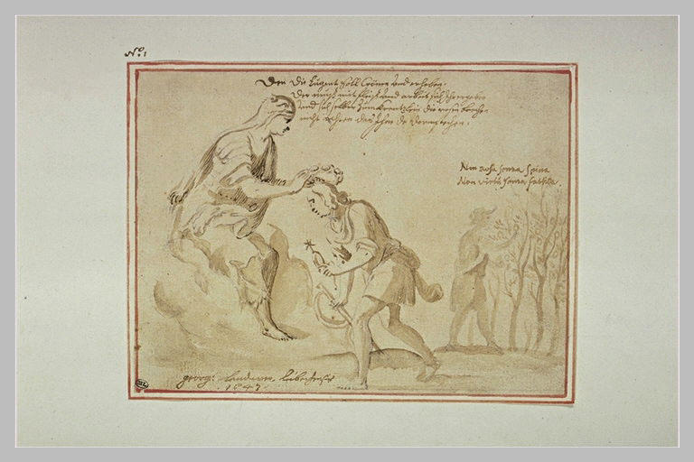 Femme drapée couronnant un homme : allégorie sur la récompense de la Vertu