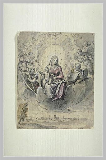 POP | Plateforme ouverte du patrimoineLa Vierge et l'Enfant, au-dessus d'une ville, entourés d'anges musiciens