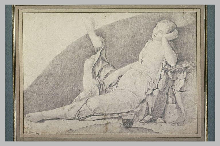 Jeune femme demi nue, endormie, dont la draperie est soulevée par une main - POP