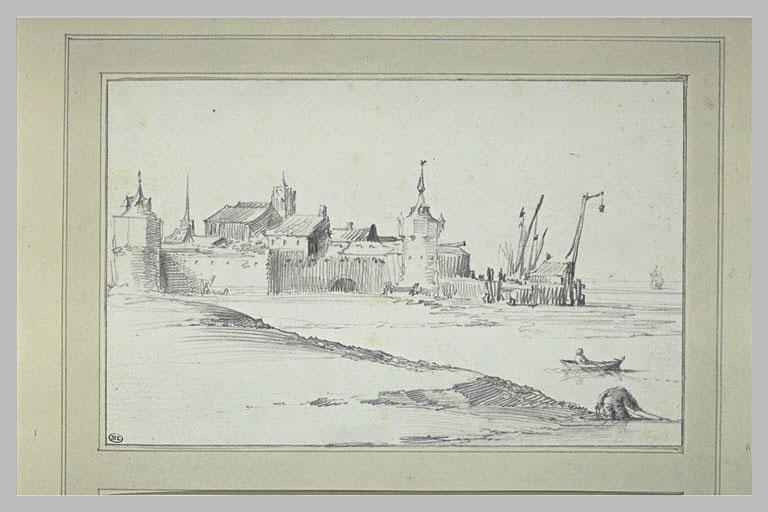 Ce dessin fait partie d'une série de vues, probablement tirées d'un carnet, qui semblent toutes représenter la même cité fortifiée.