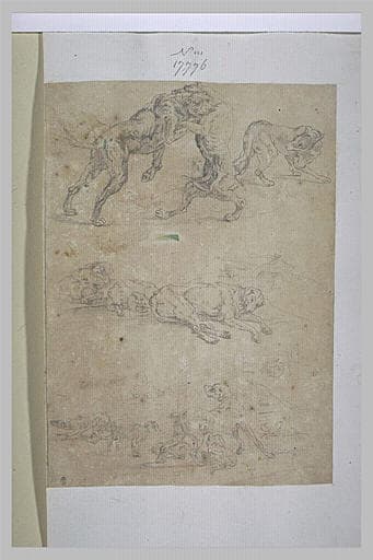 POP | Plateforme ouverte du patrimoineTrois différentes études de chiens, dont deux se battant