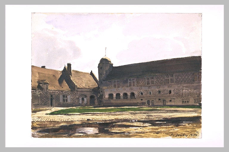 Dans les années 1850, une impulsion irrésistible l'ayant poussé à acquérir un pied-à-terre à Varengeville, il y passe en famille bien des étés, travaillant avec ardeur sur le motif et réalisant des aquarelles hautes en couleurs et rehaussées de gouache grumeleuse. Le manoir d'Ango, construit au XVe siècle par le célèbre armateur dieppois Jean Ango, avec son colombier revêtu d'une savante marqueterie de pierre et de briques, au centre de la cour intérieure, lui inspire plusieurs aquarelles de la veine de celle-ci. (Souvenirs de voyages, 1992)