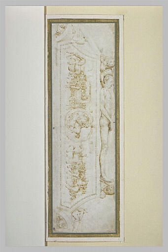 Catalogue de Tauzia, n° 21. Ce dessin faisait originellement partie de l'Album Bellini conservé au Louvre, et serait un projet pour le monument funéraire de Borso d'Este