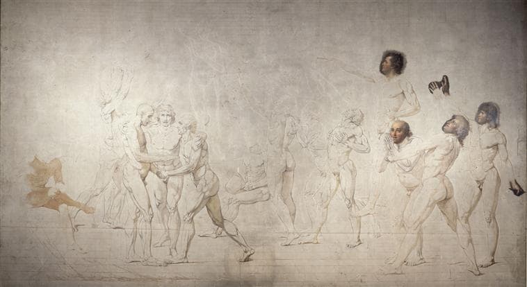 Le Serment du Jeu de Paume, avec légende ; Le Serment du Jeu de Paume à Versailles le 20 juin 1789, fond d'architecture de Charles Moreau (autre titre) - POP
